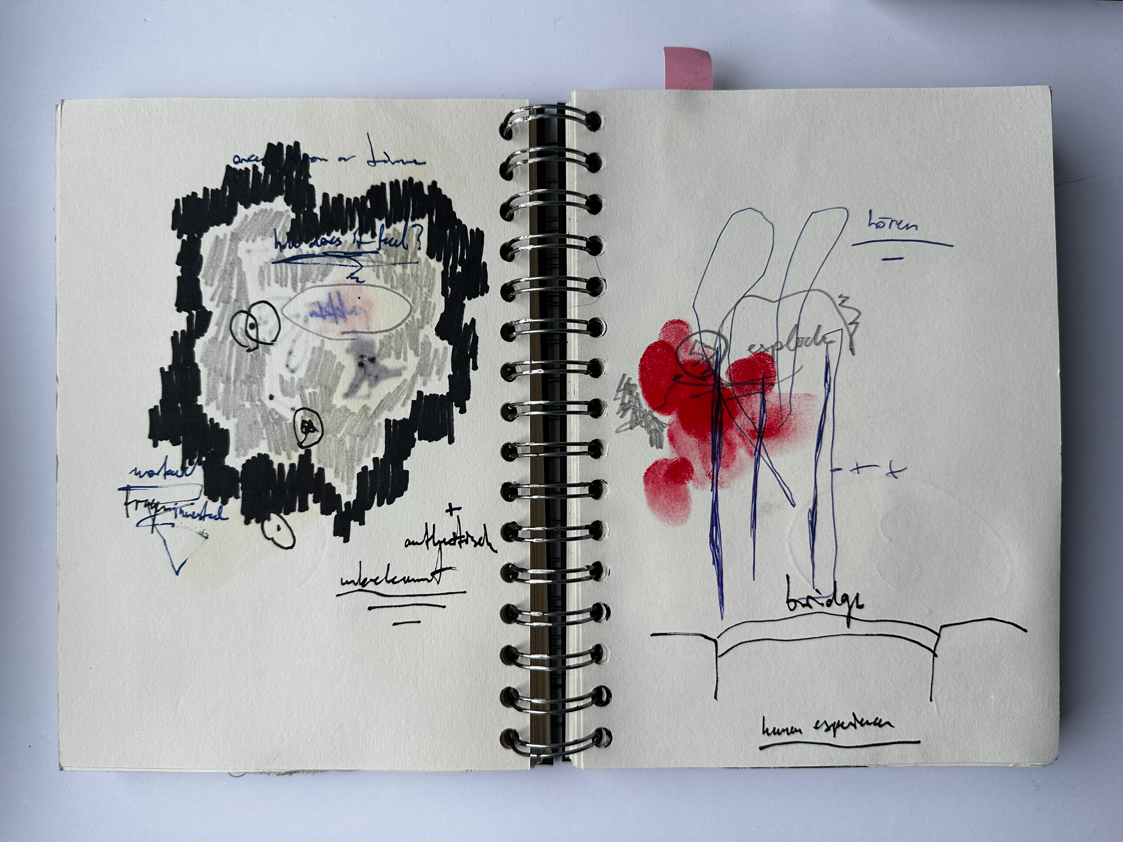 Works from sketchbooks 6 and 7 (2025-2026). mixed media on paper, size of the books is a5